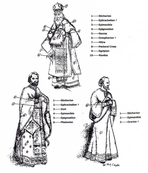 - Acolytes wear special vestments: a tunic (stiharion) which represents purity of soul, happiness, and salvation. The very young acolytes are permitted to wear a long sash (orarion) which represents the wings of an angel because they are considered pure. Older acolytes will be permitted to wear the orarion when they are ordained as readers of the church and have attained purity of spirit.