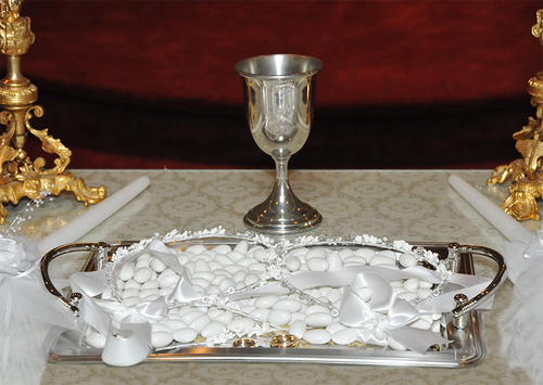 - A wedding tray filled with koufeta (White Jordan almonds).
